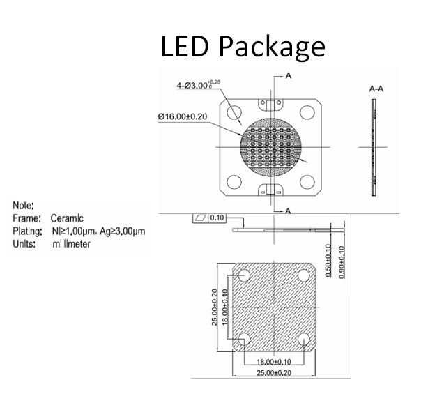 Made of LTCC or HTCC, the package is designed for LED, having good thermal characteristic, high reliability, small volume and low cost. Power can reach to 10W.